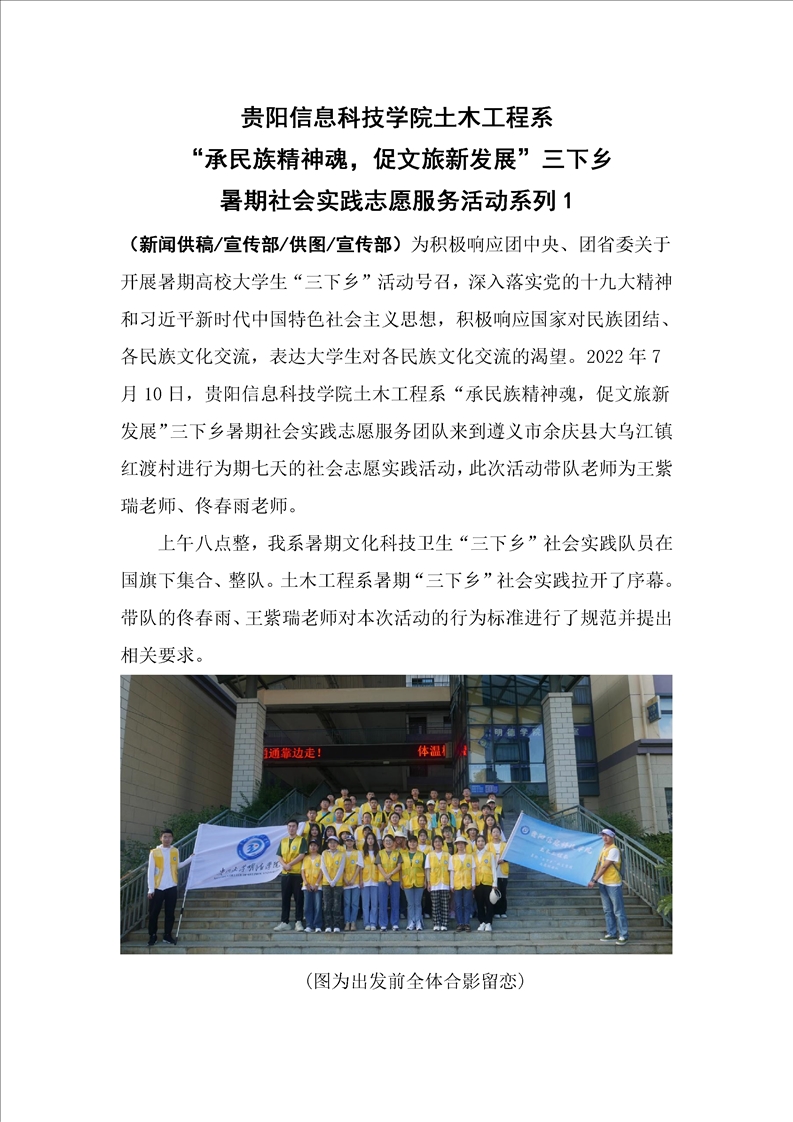 BV伟德中国官方网站土木工程系“承民族精神魂,促文旅新发展”三下乡暑期社会实践志愿服务活动系列1