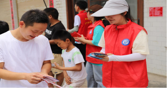在活动结尾之际,志愿者向小朋友的家长进行民族团结、普法宣传单的发放,讲解关于民族团结和普法教育的意义。