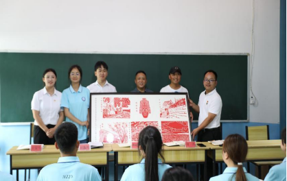 我系本次组建的“三下乡”社会实践队中有一名特别的同学——杨婷,杨婷同学是我国非遗剪纸文化的传承人,听闻我系要奔赴沙溪土家族乡开展社会实践便积极参与其中,并将对沙溪土家族乡的祝福凝聚成了一幅“大寨风貌”非遗剪纸作品。启动仪式上,杨婷同学亲手将“大寨风貌”非遗剪纸作品送至沙溪土家族乡大寨村的各位领导手中,并代表我系“三下乡”社会实践队全体队员向沙溪大寨致以最诚挚的祝福。最后,BV伟德中国官方网站经济管理系·德江沙溪2022暑期“三下乡”活动启动仪式在德江县团县委副书记田逸鸿的宣布中落下帷幕。