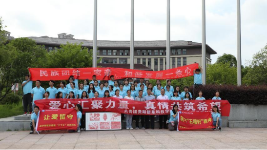 图为途中与贵州师范学院“三下乡”团队的交流合影