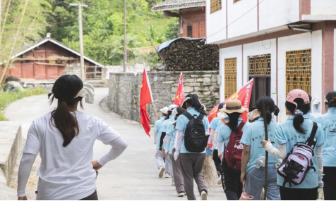 图为队员们出发开展乡村环境卫生整治