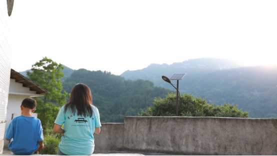 图为社会实践服务队迎着太阳的照射下与留守儿童一起看书