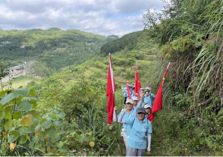 图为队员们翻山越岭抵达目的地