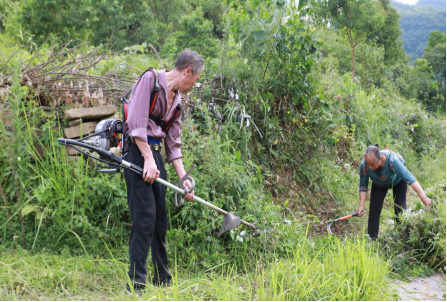 经过一个早上的努力,原本荆棘满布的道路焕然一新,富有生机,连续五小时的高温砍伐工作让每一位队员都深有感触。虽大寨村山路崎岖,连绵起伏;但队员们信念坚定,不畏险阻!一次服务,助力的是大寨村的文化旅游发展,温暖的是每一位留守儿童的内心!