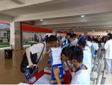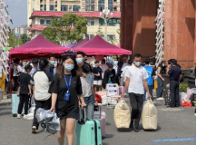 为了让新生尽快熟悉校园,志愿者们也会和新生介绍校内就餐、住宿、购物等情况,帮助他们尽快融入大学生活。校内各的摆渡车为新生解决了行李搬运的难题,新生可以乘坐摆渡车直达各自寝室。