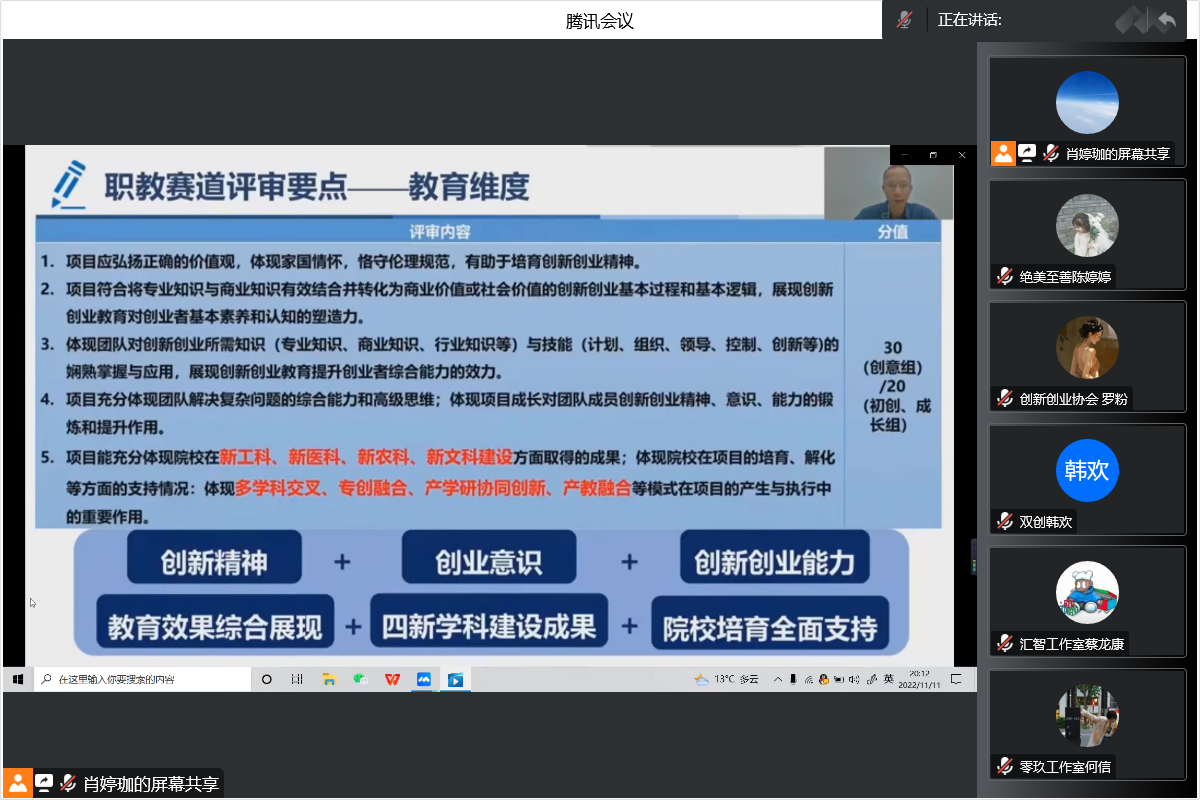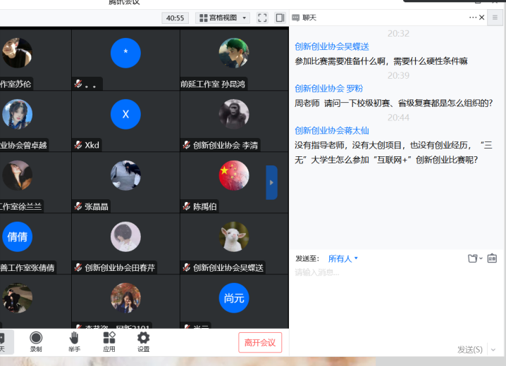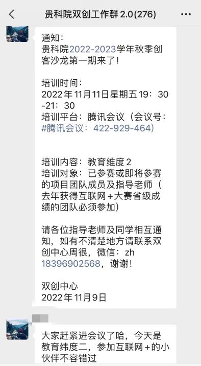 创业是时代的主旋律,大学生是创业的主力军。因疫情影响,伟德官网为响应国家号召,引导大学生了解创业知识,激发大学生的创业热情,同时进一步落实我院对培育创新创业人才计划,在11月11日晚上,双创中心组织学生在腾讯会议上开展贵科院创客沙龙飞第一期线上培训。本次参与分属领导杨波副校长、各系双创老师以及已参赛或即将参赛的项目团队成员以及去年获得互联网+大赛省级成绩的团队,由双创中心周很主持。参会人数达六十余次。