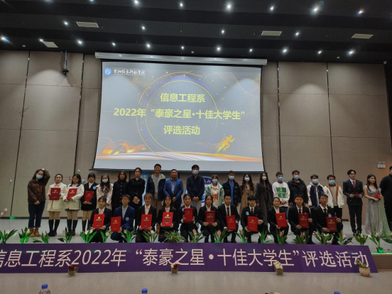 信息工程系2022年“泰豪之星·十佳大学生”评选活动在系部领导、老师的支持下,在同学们的积极参与下取得了圆满成功!青春正当时,少年当自强,向榜样学习,汲取奋进力量!