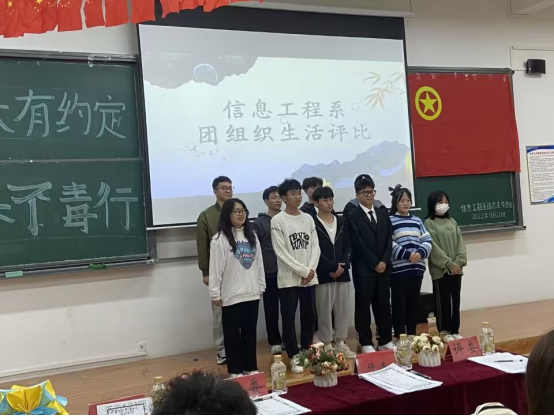 2022年11月20日,信息工程系团总支在D102举行以“未来有约定,青春不毒行”为主题的团组织生活评比活动,出席本次活动的有各系学生会负责人及线上观众280余人。