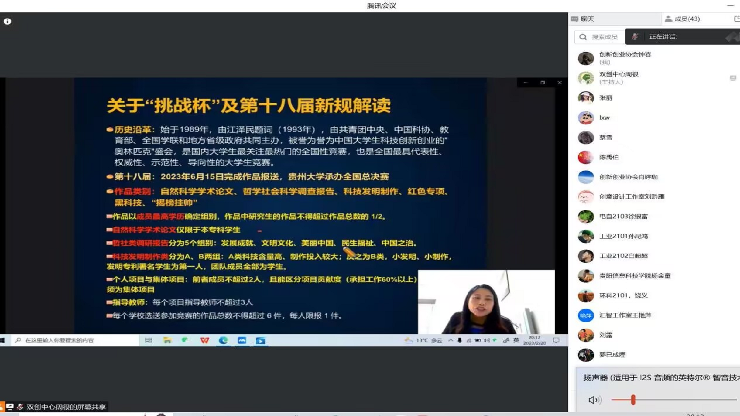 最后一期线上培训主要围绕关于“挑战杯”及十八届新规则解读,从作品类别、作品的总数、折射类研究报告的无个组别等等比赛规则展开,于2023年2月20日即开学前圆满完成。