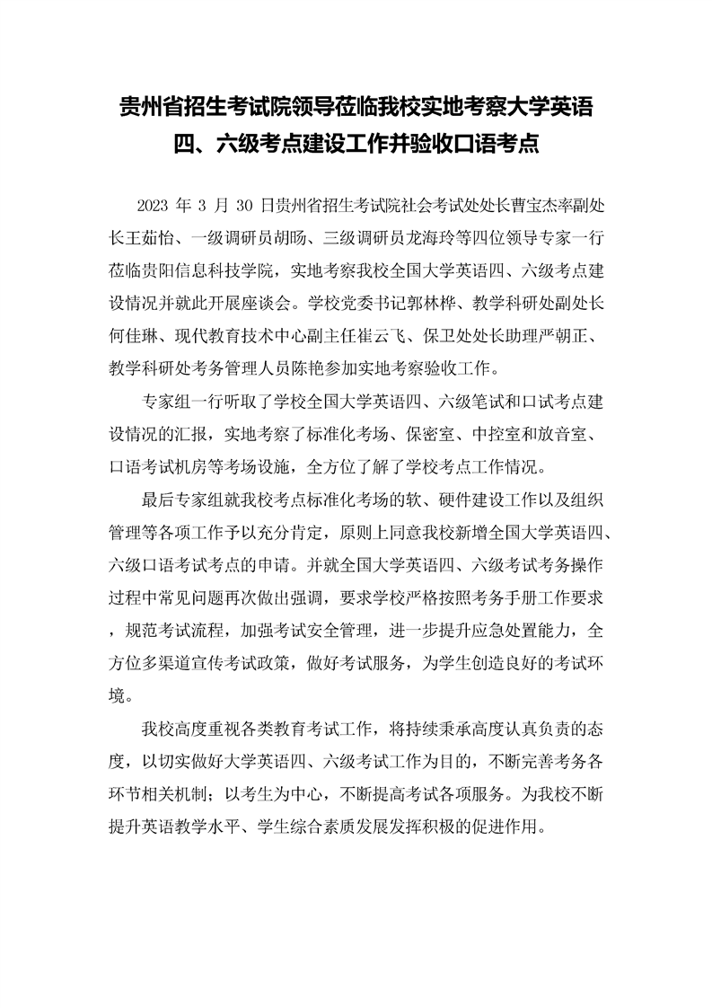 贵州省招生考试院领导莅临伟德官网实地考察大学英语 四、六级考点建设工作并验收口语考点