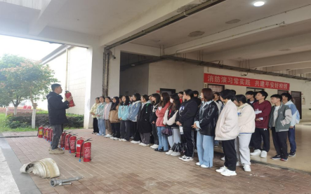 讲座结束后,在微型消防站空地处举行干粉灭火器灭火演练,严老师再次强调干粉灭火器的使用技巧和注意事项,以“互助协调”为原则,分组轮流上前操作,整个过程有条不紊,学生们最终熟练掌握灭火器的使用方法。