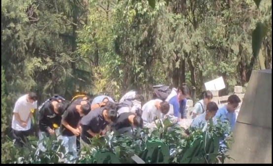 (图为 师生向先烈鞠躬致哀)