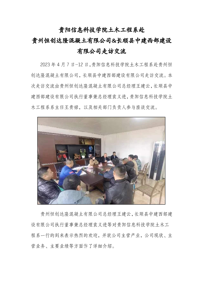 BV伟德中国官方网站土木工程系赴贵州恒创达隆混凝土有限公司&长顺县中建西部建设有限公司走访交流
