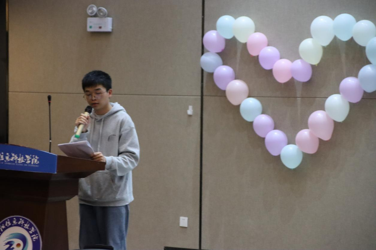 紧接着进行大会第二项,由负责创新创业协会的周很老师发言。周老师告诉我们关于创新创业的相关知识并对到场观众表示歉意,因为设备原因,此次活动并没有十分的完美,但是所谓的不完美才是完美。紧接着是14届创新创业协会正会长徐晟昊发言。他为我们讲述了他与创新创业的故事。用幽默的话语,讲述自己创业的经历,他谈到只要有目标就要一直坚持,不要因为结果而去努力,爱拼才会赢