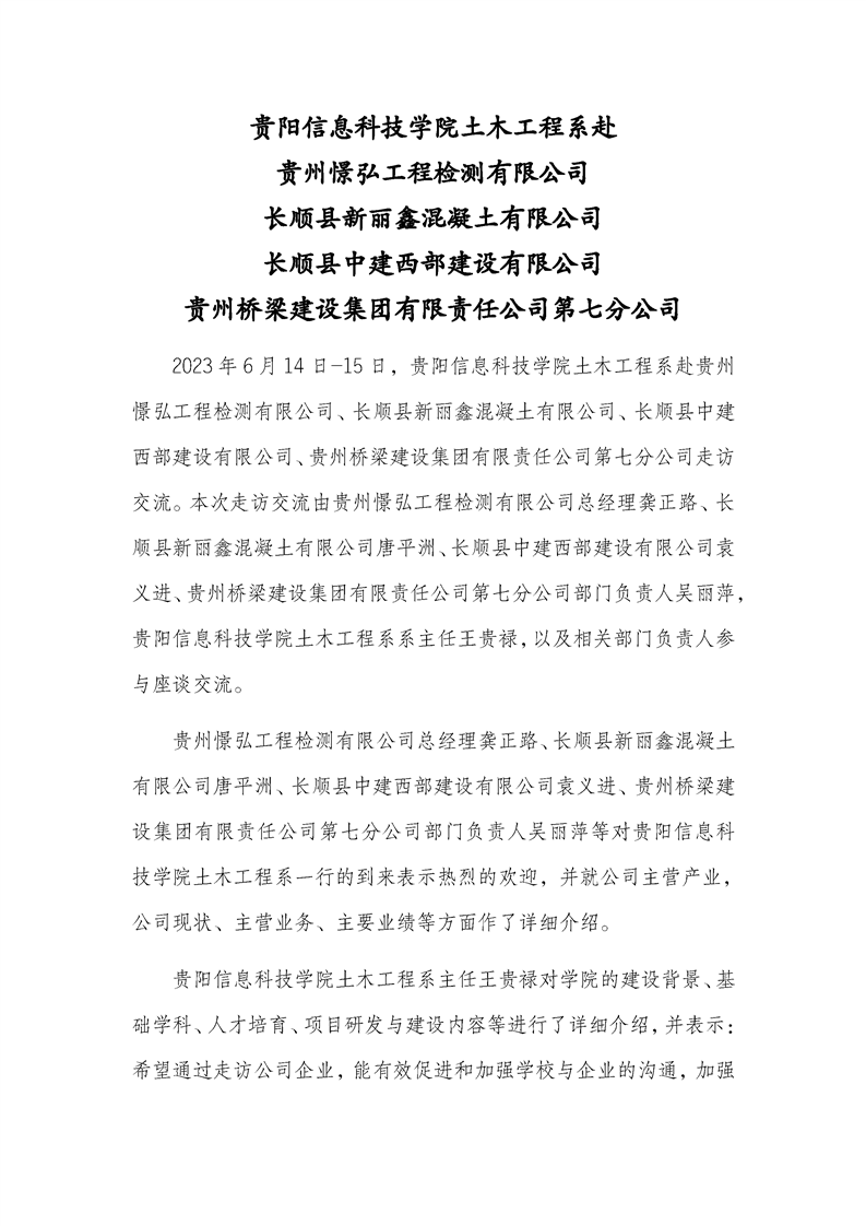 BV伟德中国官方网站土木工程系赴贵州憬弘工程检测有限公司、长顺县新丽鑫混凝土有限公司、长顺县中建西部建设有限公司、贵州桥梁建设集团有限责任公司第七分公司