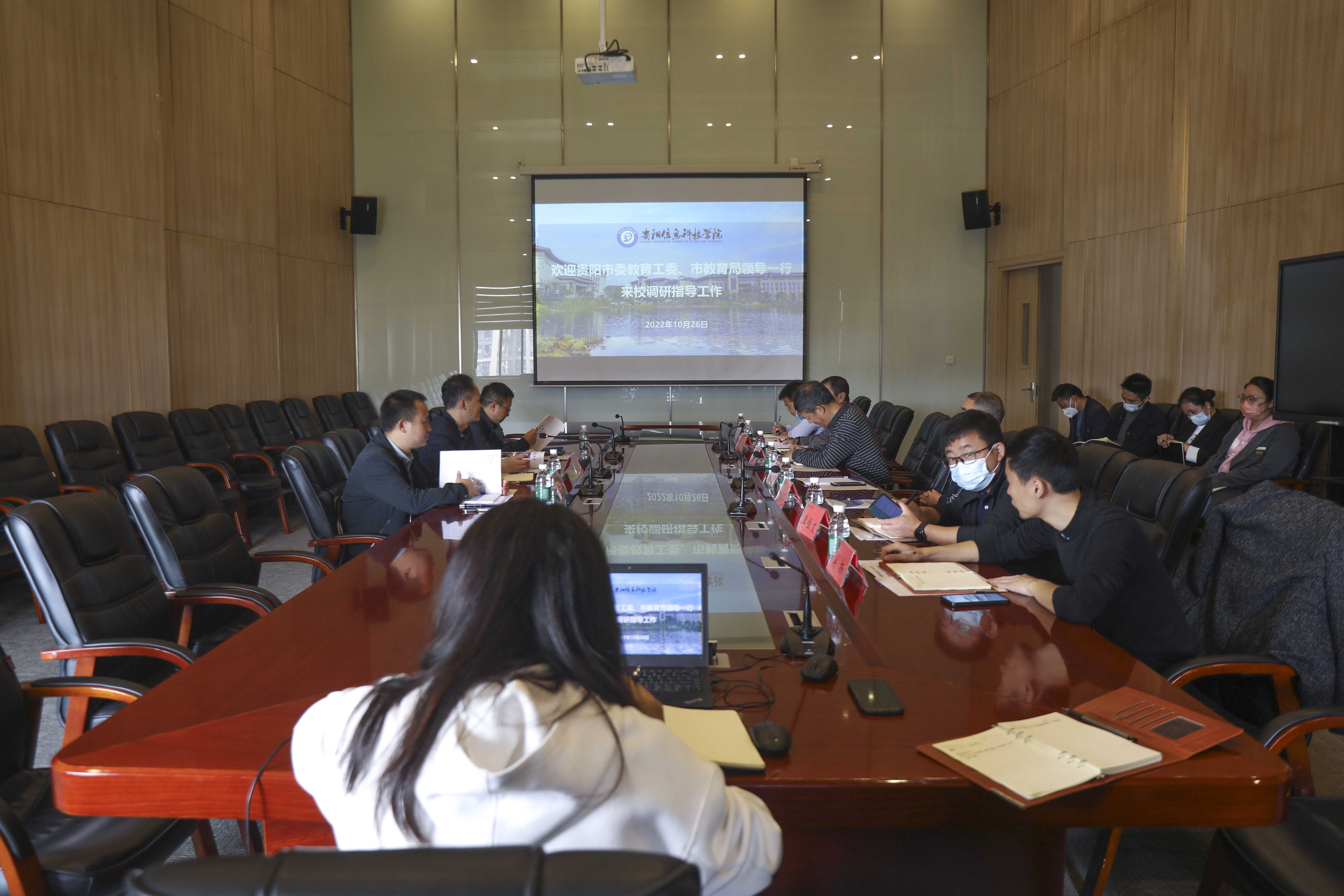 新闻网讯(供稿/供图 党群工作部)10月26日上午,贵阳市委教育工委副书记肖文一行到校调研指导伟德官网党建工作。伟德官网董事会副董事长谢田凯,校长(首席治校专家)唐建荣,党委书记郭林桦,各系党总支书记、相关部门负责人陪同调研并参加座谈交流会。