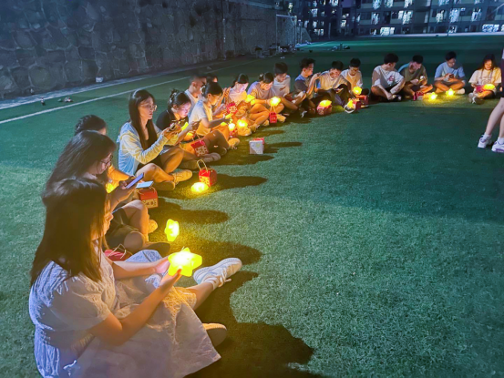 最后一个活动环节中辅导员葛老师给大家发放每人一颗星星彩灯,主持人张艺娴号召大家围成一个圆席地圈而坐,在大家手持挥舞的夜灯中,同学们合唱了《年少有为》、《北京东路的日子》、《挪威的森林》等歌曲,最后在活动总结中,辅导员葛老师说到“人生会有坦途平顺,也会有蜿蜒曲折,但要时刻相信作为优秀班集体的一员,你们是最棒的,是会发光的,愿这颗温暖明亮的小星星,照亮你们人生前行的路,驱散阴霾,走向明朗。愿你们都能做自己人生中最亮的星,不仅能闪耀自己,也能照亮他人”。同学们纷纷表示,通过本次趣味素拓联谊活动,使得同学们之间的凝聚力增强了,体悟到主动建立沟通的重要性,也感受到了作为优秀班级体一员的骄傲感。活动最后,大家合影留念。