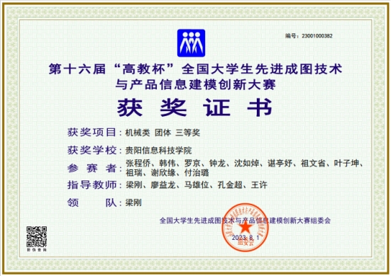 在此前进行的2023年贵州省先进成图技术大赛暨国赛选拔赛中,伟德官网共47名同学参加机械类竞赛,获得省赛个人一等奖1项,二等奖5项,团体二等奖3项,获奖名单如下:
