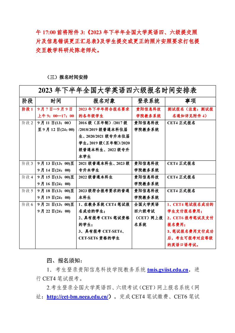 关于做好 2023 年下半年全国大学英语(日语)四、六级考试报名工作的通知