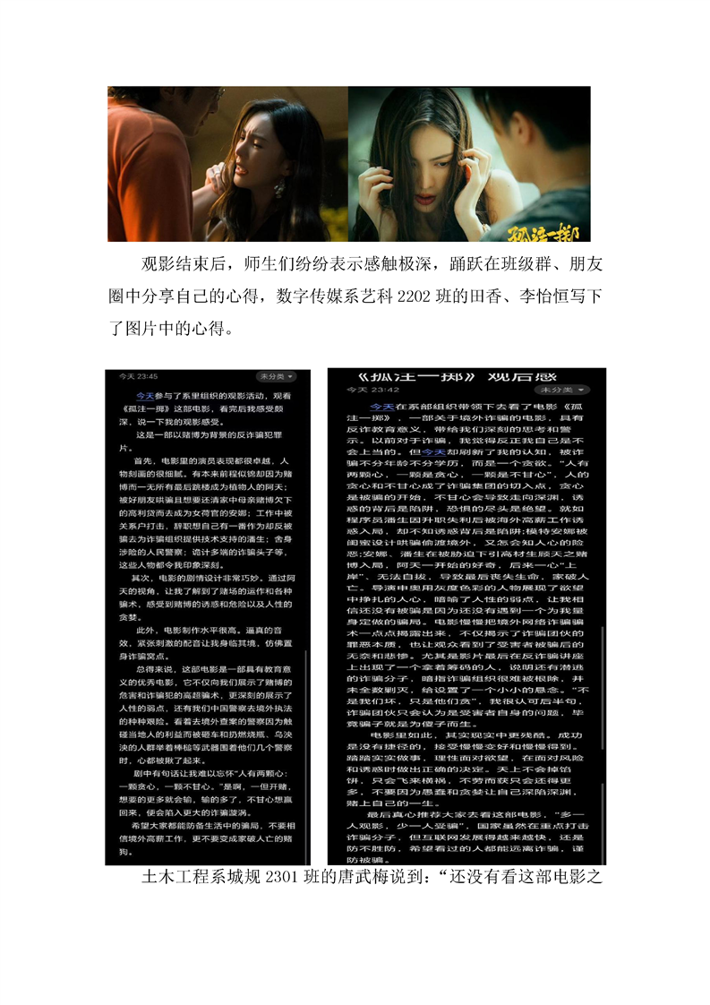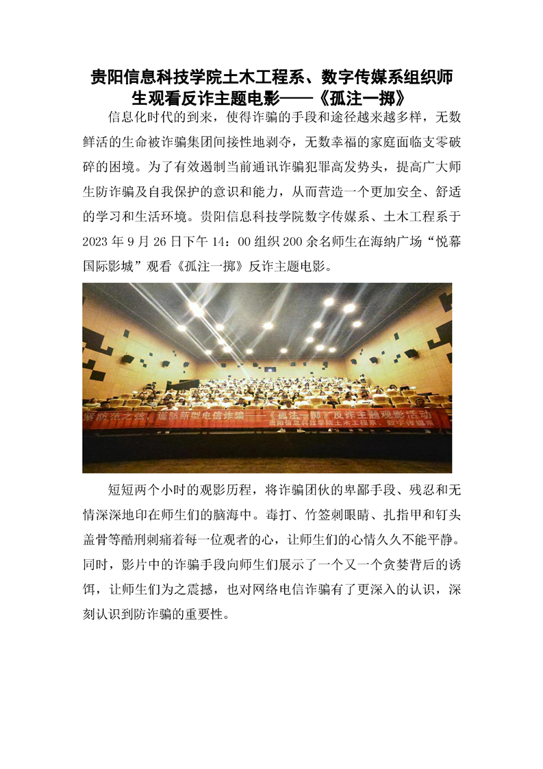 BV伟德中国官方网站土木工程系、数字传媒系组织师生观看反诈主题电影——《孤注一掷》