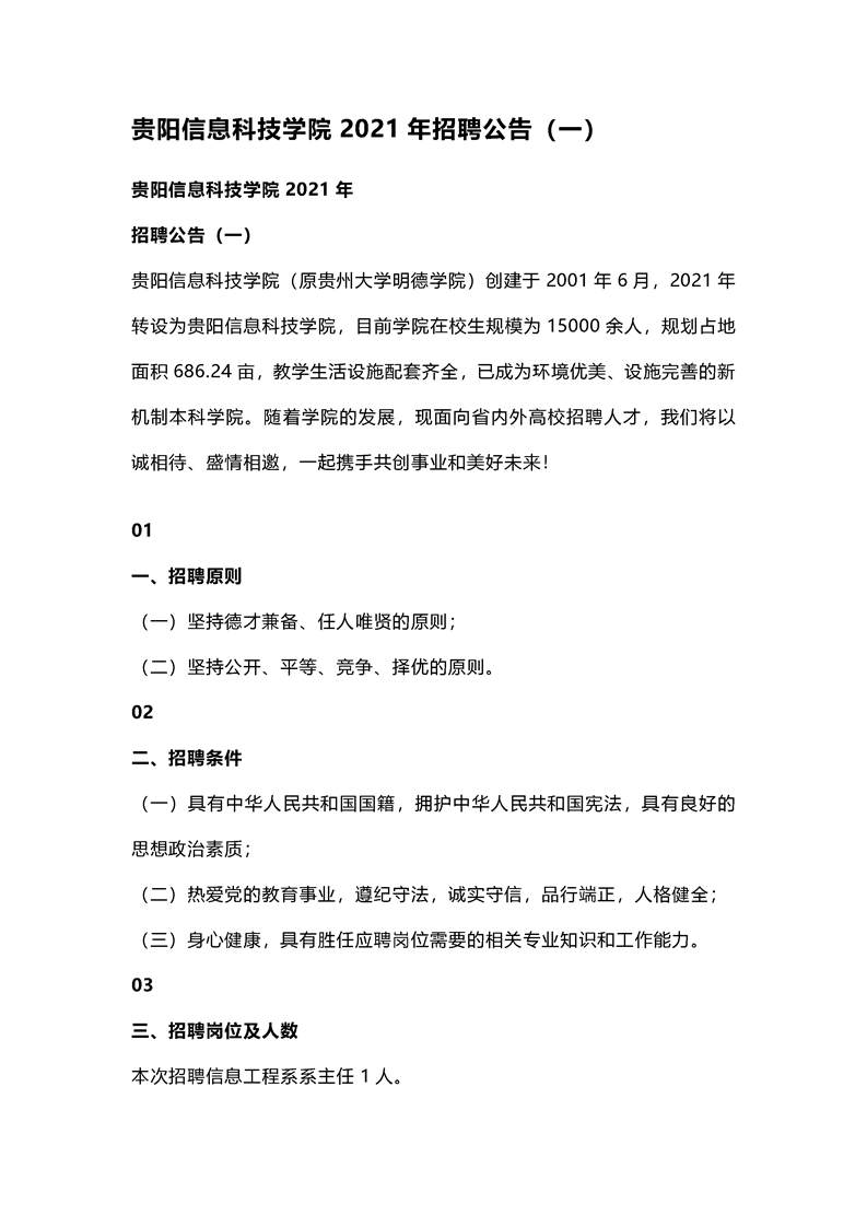 贵州大学明德学院2020年招聘公告