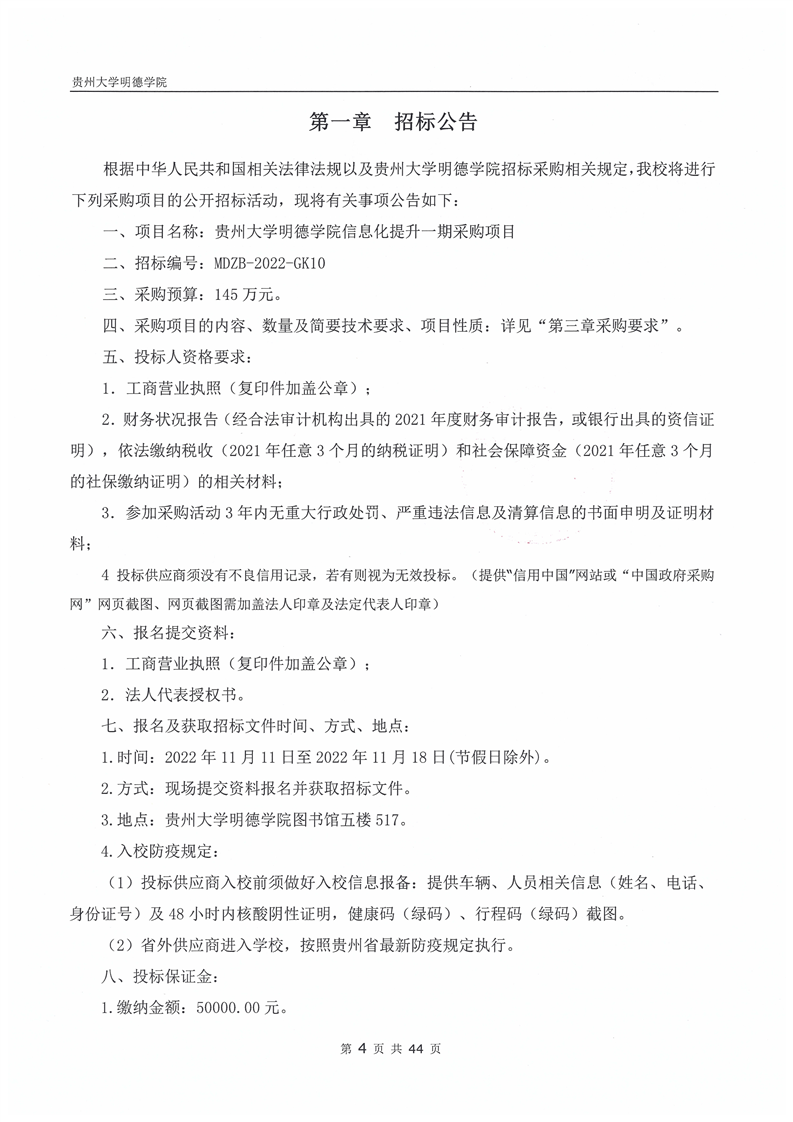 信息化提升一期项目招标公告