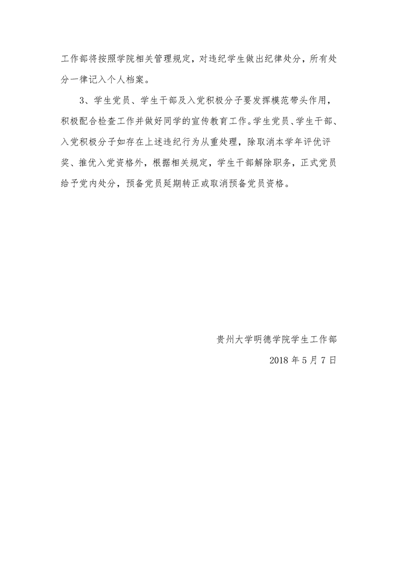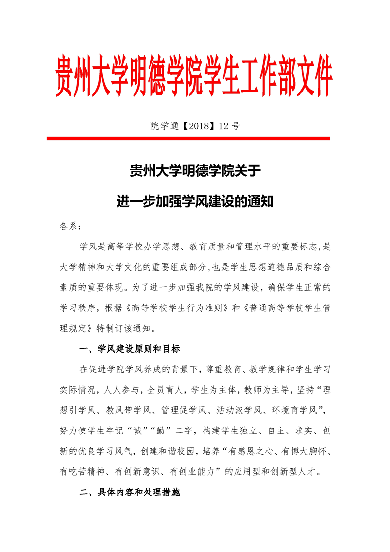 贵州大学明德学院关于进一步加强学风建设的通知