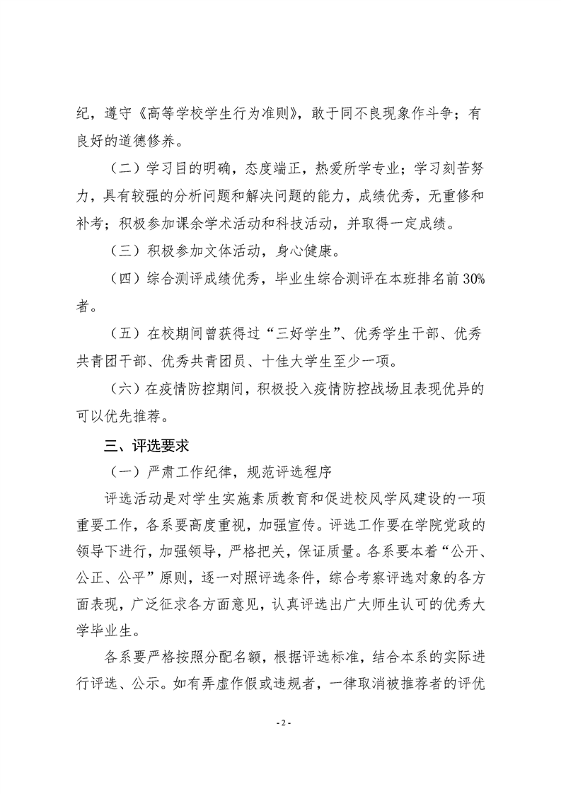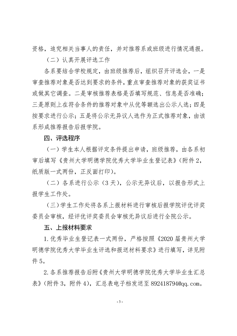 关于评选2020届贵州大学明德学院优秀大学毕业生的通知