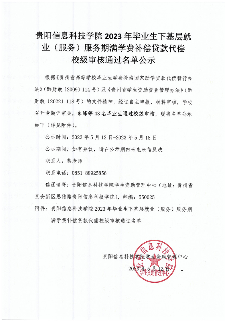 | BV伟德中国官方网站2023年办理毕业生下基层就业(服务)服务期满 学费补偿贷款代偿校级审核通过名单 |