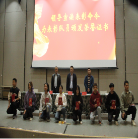 全体新队员接过使命与责任庄严宣誓:自觉接受爱国主义教育,增强爱国主义情怀,遵守队内章程,努力学习、刻苦训练、团结一致、以身作则,坚决完成护旗任务,为国旗添彩、为学院争光。