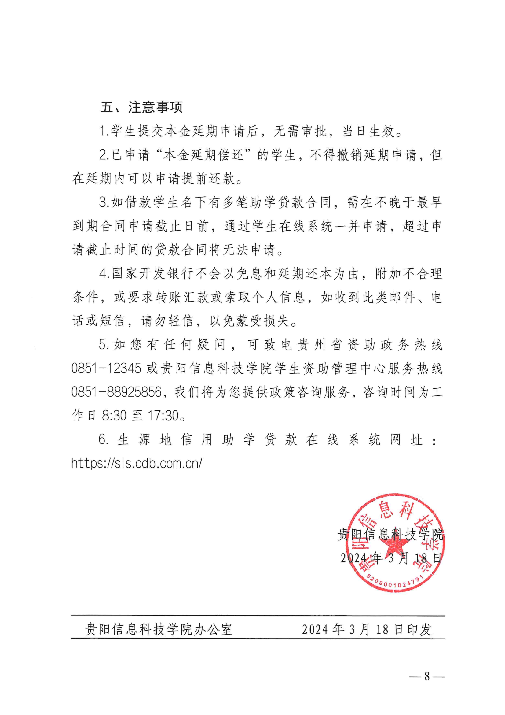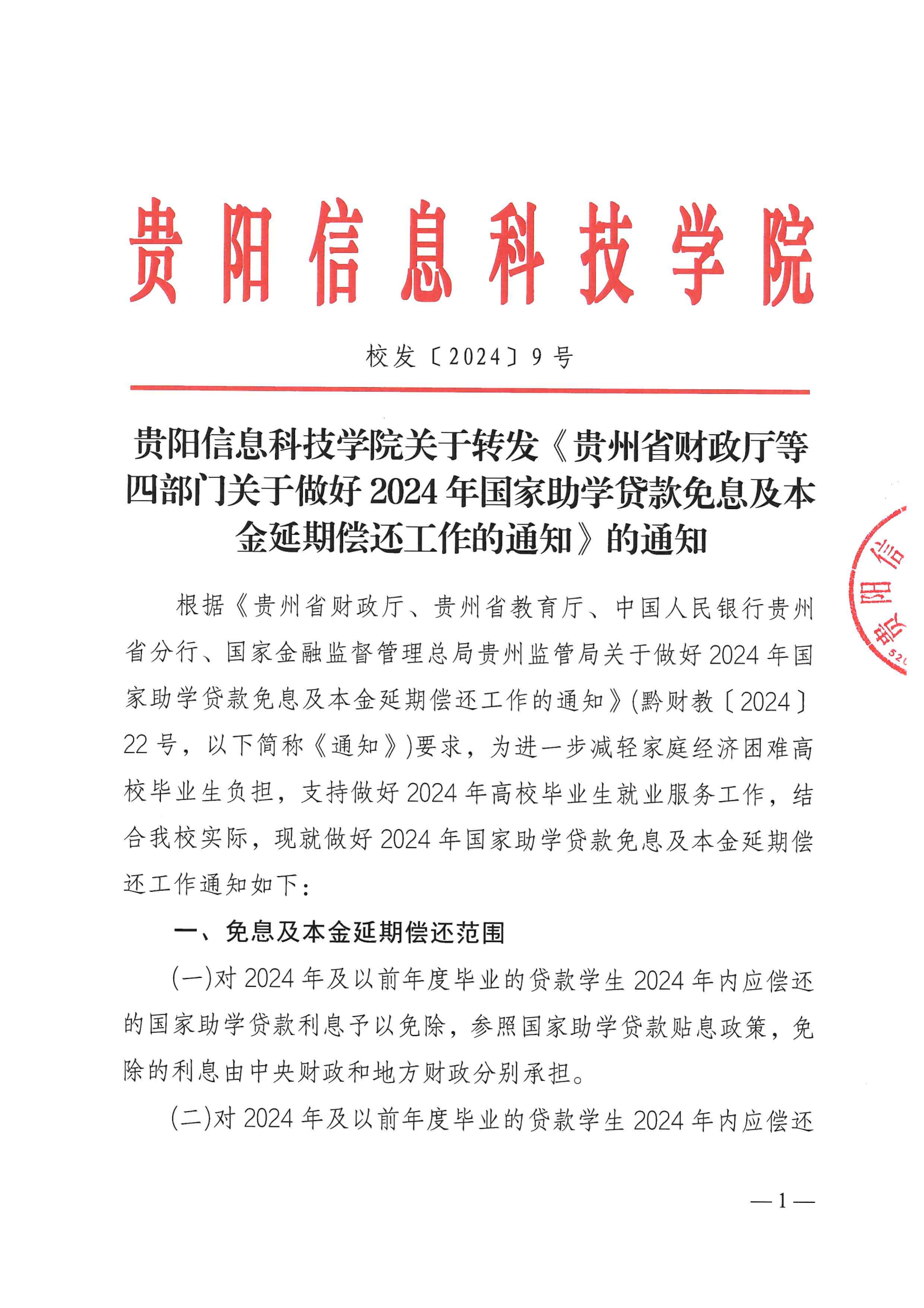 校发〔2024〕9号-BV伟德中国官方网站关于转发《贵州省财政厅等四部门关于做好2024年国家助学贷款免息及本金延期偿还工作的通知》的通知