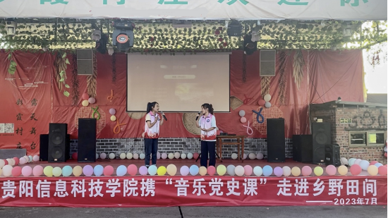 在“百年党史·一路红歌”红色文化教育品牌影响和引导下,BV伟德中国官方网站诞生了一支“声入红心”学生演唱团。同学们在参与“百年党史·一路红歌”音乐党史课的备课、排练和演出过程中,不仅使自己潜移默化地让党的理论知识入脑入心,而且在表演中让同龄段的同学观众也入脑入心,深受党史教育。2023年夏天,在大学生“三下乡”社会实践活动中,“声入红心”演唱团将“百年党史·一路红歌”音乐党史课搬进了遵义市桐梓县官仓镇红旗村,在大山深处用“讲、唱、诵、演”等多种形式,给当地村民和中小学生带来了一场特别的乡村音乐会,让广大群众接受党史教育,让爱国主义精神在学生心中牢牢扎根,同时对于文化赋能乡村振兴也起到了推动作用,得到当地党员和群众的一致好评。村里81岁的老党员付行磊听着经典红歌热泪盈眶地说:“入党50多年,看见我们这代人的故事,有后人传承和歌唱,我开心也放心了。”