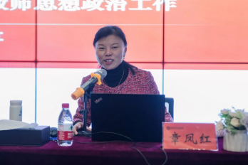 随后,章凤红教授以党的创新理论引领教师思想政治工作为题,从创立背景、科学内涵、历史地位等四个方面梳理了近年来思政育人工作的基本情况,并强调了思政教师主动研判网络思政新形式、新问题的重要性,她表示,思政课教师要努力解决好“培养什么人、怎样培养人、为谁培养人”这个根本问题,积极推动思想政治教育改革创新,不断完善和优化网络育人路径,加强“互联网+思政教育”建设。