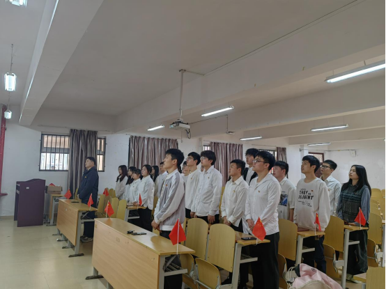 信息工程系团总支学生会组织部负责人贺绍贤宣读入团成员名单,团总支学生会负责人杨倩为新团员佩戴团徽,怀着对共青团的向往与崇敬,新团员们在鲜艳的团旗下庄严领誓:“我志愿加入中国共产主义青年团,坚决拥护中国共产党的领导……”一声声铿锵有力的誓言在教室内回荡,诠释着新团员的使命和担当,握紧的右拳,表明了团员们坚定的信念和决心。