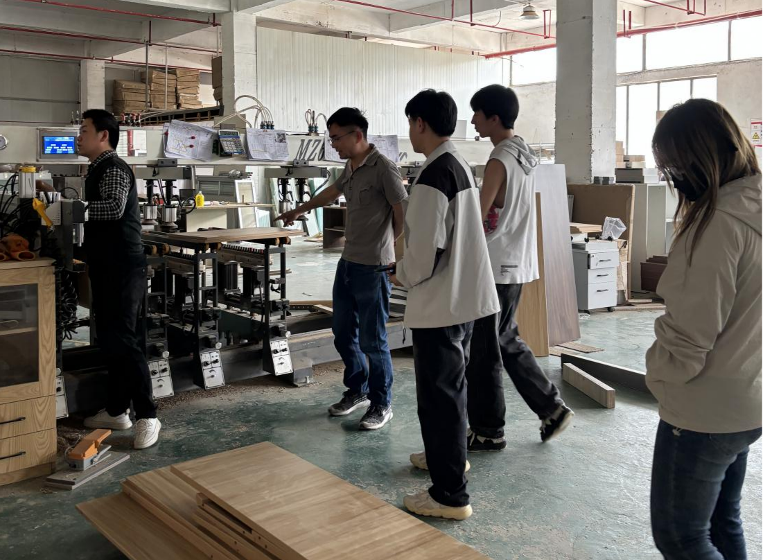 陈宾老师带领学生参观了企业,和企业进行了深入的沟通。访企拓岗不仅加深了学生们对家具制造行业的认识,还提升了他们的实践能力和沟通能力。回到校园后,学生将把在实地参观中获得的经验和知识与同学们分享,共同探讨家具行业的发展前景。访企拓岗行动不仅为学生们搭建了与企业沟通交流的桥梁,也为他们未来的实习和就业奠定了坚实的基础。