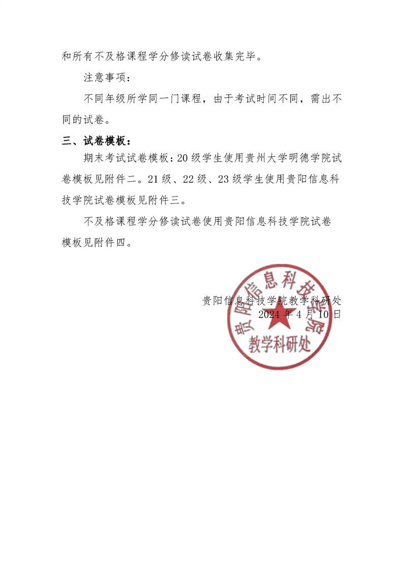 关于做好2023-2024学年度第二学期期末考试和不及格课程学分修读考试试卷命题及制卷工作的通知