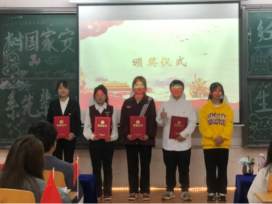 激烈的角逐后,各评委从选手的演讲表现、手工作品及视频内容等方面进行综合评审,最终评选出三个获奖团队:第一名财管2201团支部,第二名人资2202团支部,第三名工商2301团支部,以及最佳解说员郑颖竹。活动最后,由评委张安琪对本次团组织生活评比主题活动获奖的选手进行颁奖并合影留念。