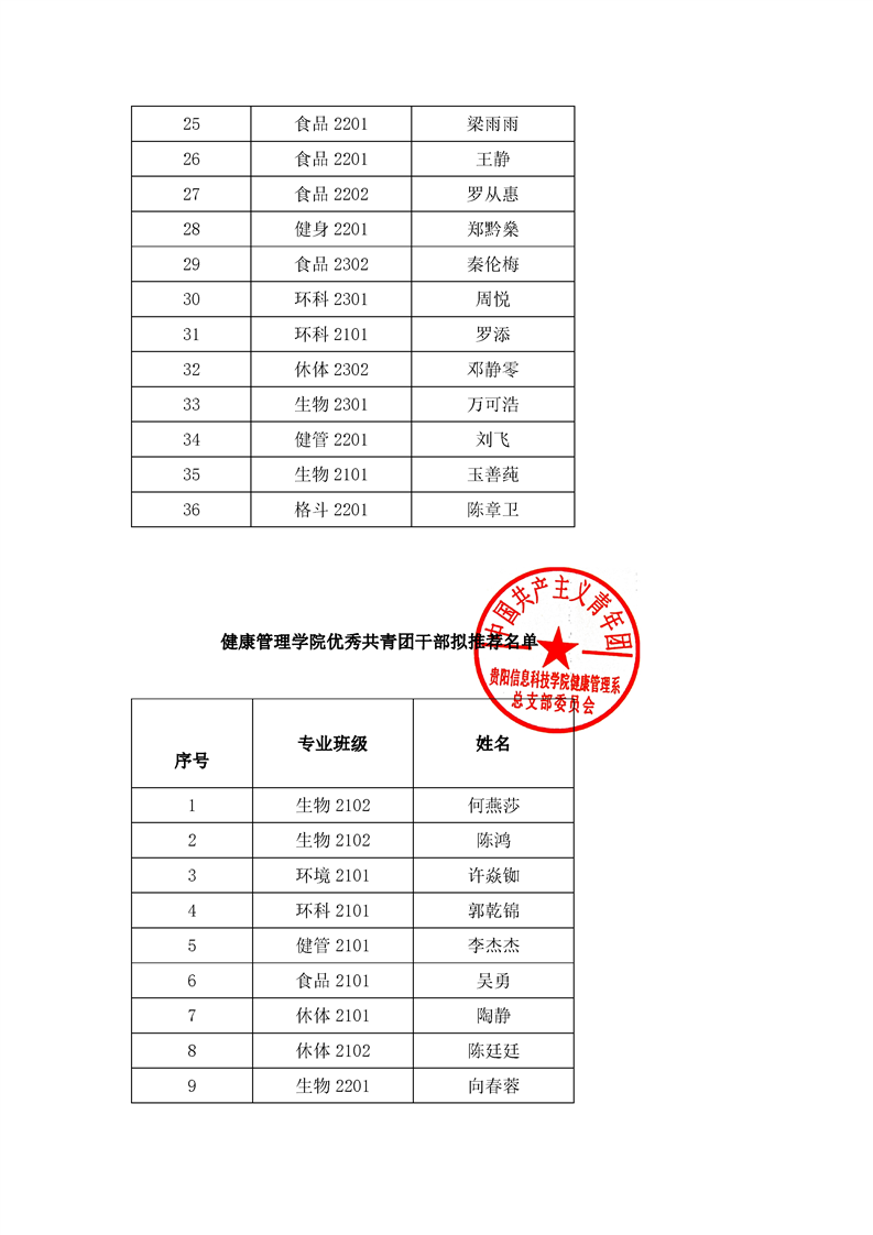 健康管理学院关于2023-2024学年优秀团支部、优秀共青团员、优秀共青团干部拟推荐名单的公示