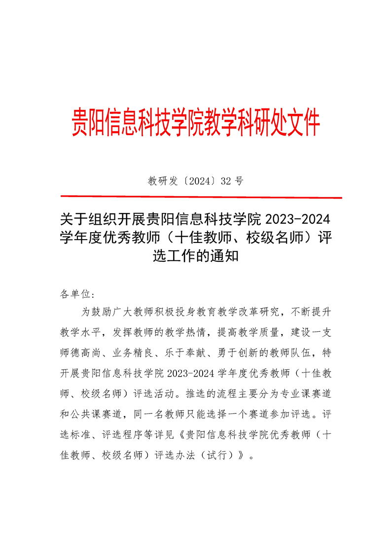 关于组织开展BV伟德中国官方网站2023-2024学年度优秀教师(十佳教师、校级名师)评选工作的通知