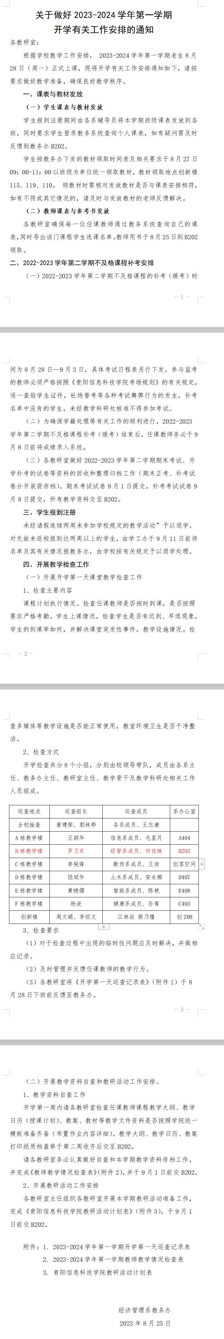 经济管理系2023-2024学年第一学期开学有关工作安排的通知