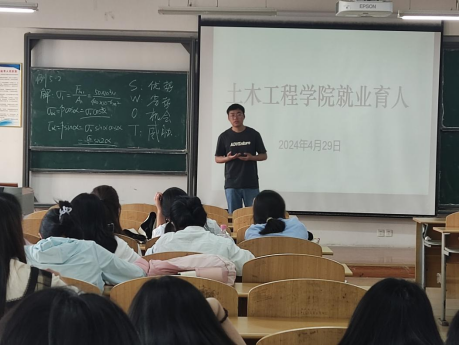 2024429日下午,土木工程学院在土木楼D206开展“职业规划和征兵宣传”就业育人讲座,此次教育讲座内容主要面向土木工程学院2021级同学,将职业规划和征兵宣传做一次详细的分析讲解,让同学们认识近几年的就业环境,认真做好的未来的职业规划。