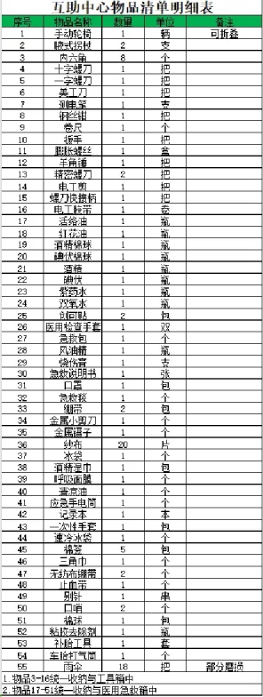 互助中心物品清单明细表