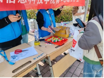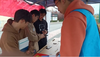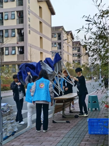 3月20号早晨十点,志愿者们在三栋公寓对面和二食堂对面集合,清点完毕人数后分配任务。随后志愿者们分组轮流给参加活动的同学签到以及礼物和绿植的发放。在这个过程中小伙伴们互相协作,共同解决问题,共同完成任务。志愿者们相互配合,在进行书籍整理时,大家紧密地相互配合,互相协调进度。