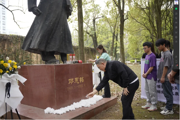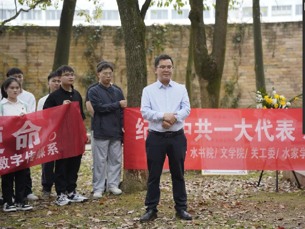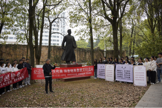 活动现场,参加活动的师生代表们为邓恩铭烈士默哀、献花、祭酒,共同追忆邓恩铭烈士生前的诗作。其后教师代表贵州民族大学潘小慧博士讲述邓恩铭烈士的生平事迹、回顾了他英勇为党的事业、国家和民族的命运奋斗终身;最后,贵州师范大学博士生导师韦正富教授赞扬邓恩铭先烈为民族大义身先士卒的事迹,勉励我们师生党员为铸牢中华民族共同体意识携手奋进。