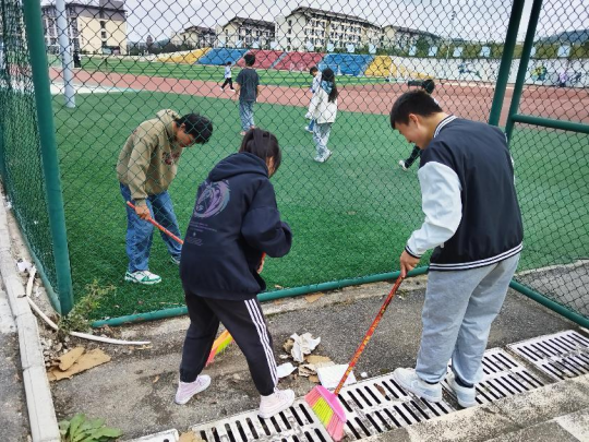 本次活动由综宣部三位负责人和十几位智能工程系团总支学生会成员共同参加。在活动过程中,同学们分工明确,认真积极,团结合作,分别对足球场、篮球场、观众席、以及周边的楼梯,厕所走廊等地方进行了仔细清洁,充分发挥“不怕苦,不怕累,不怕脏”的志愿服务精神,为同学们提供一个干净,美观的的生活环境。