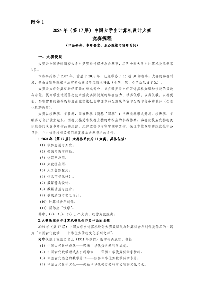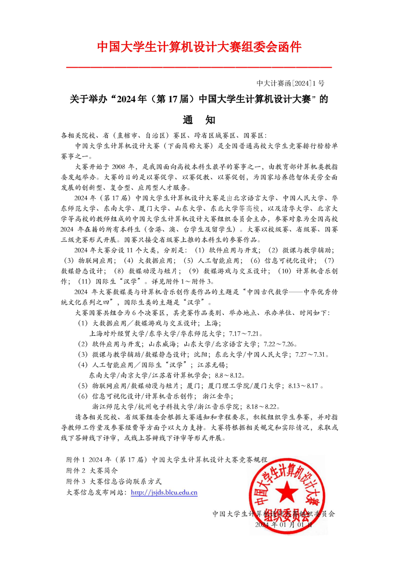 关于举办“2024 年(第 17 届)中国大学生计算机设计大赛”的 通 知