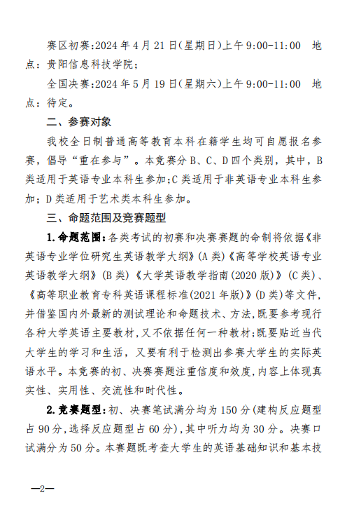 BV伟德中国官方网站关于 2024 年全国大学生英语竞赛比赛安排的通知