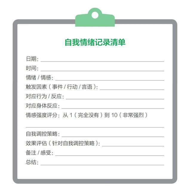 你可以试试这个“自我情绪记录清单”,它可以帮助你更好地了解自己的情绪状态、情绪变化模式和情绪表达方式,这有助于提高个人的情绪稳定性、促进心理健康。你也可以根据个人情况进行修改优化,让清单更符合你的需求。
