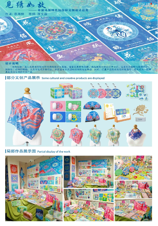 马尾绣纹样是美之层次感和韵律的集中表达。现代工艺加马尾绣纹样再设计的融合形成了兼具美观与实用的文创作品!