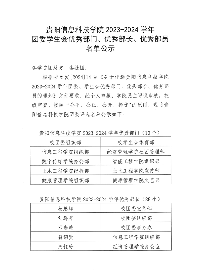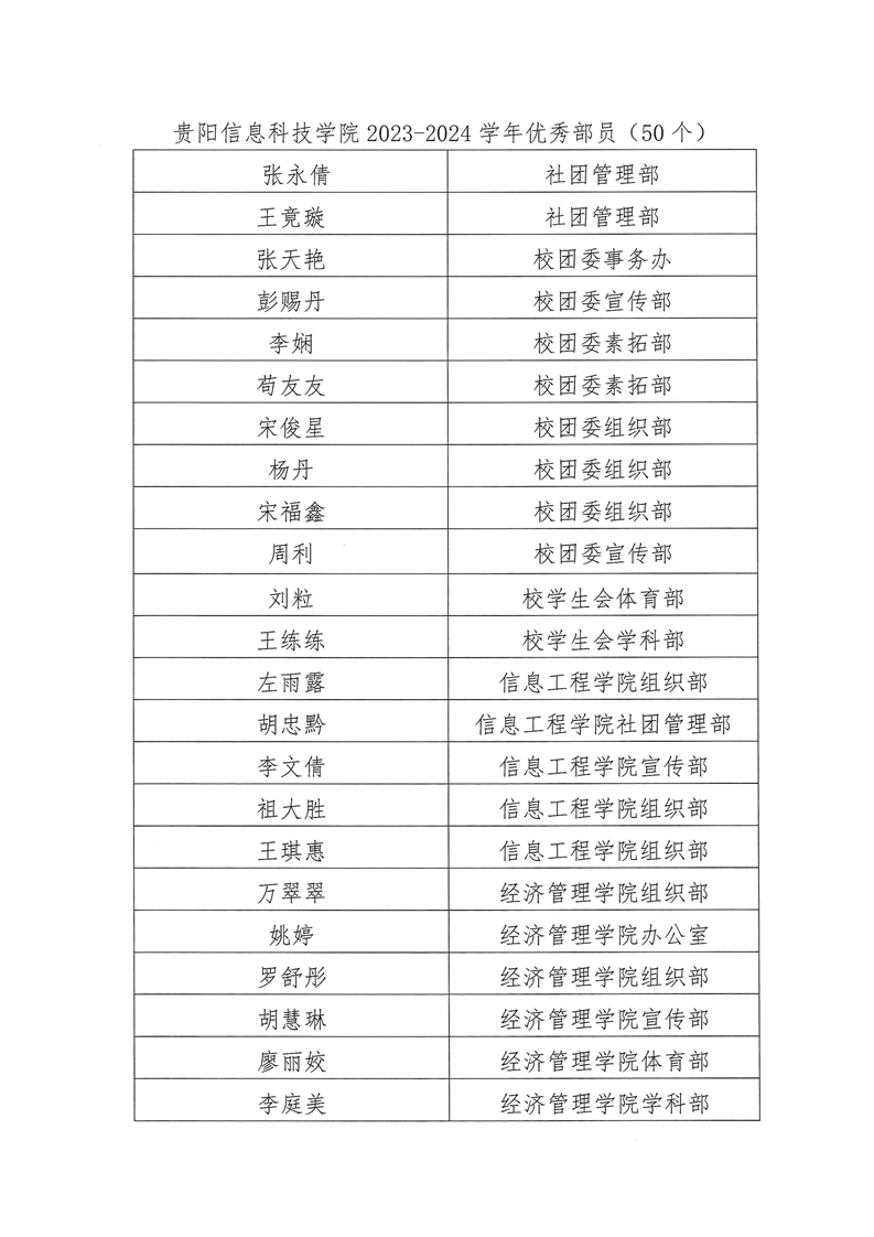 BV伟德中国官方网站 2023-2024 学年团委学生会优秀部门、优秀部长、优秀部员 名单公示